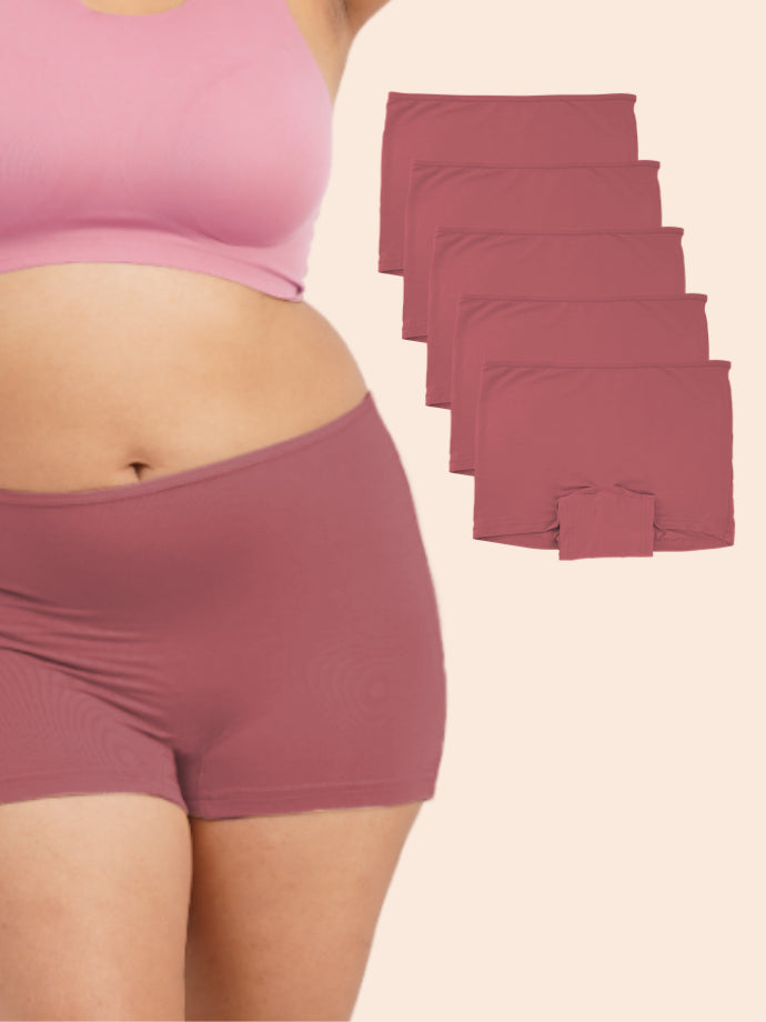 Pack of 5 - Moisture-Wicking Modal Fabric Boyshorts - Red