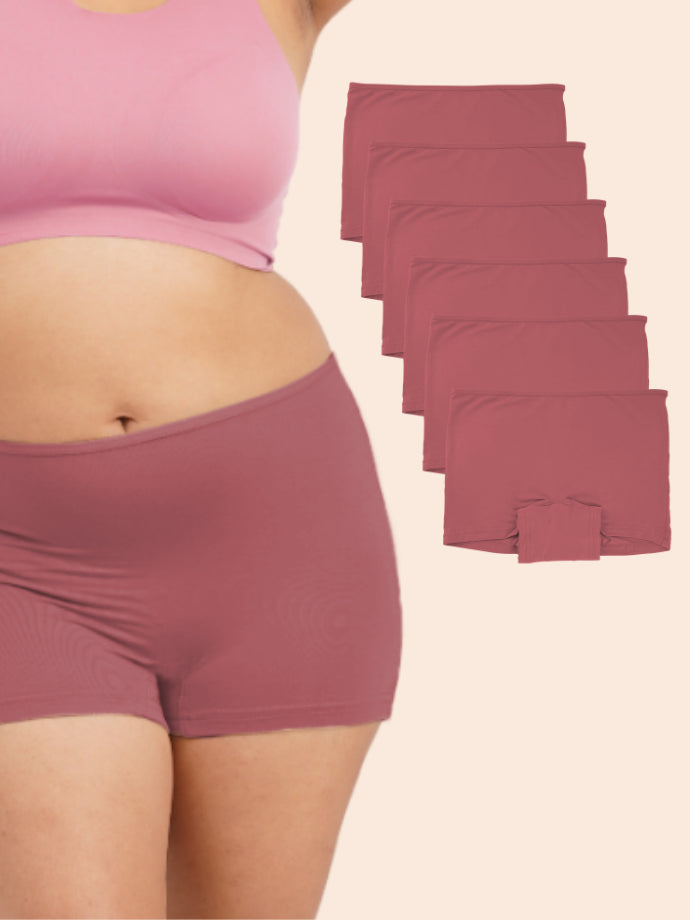 Pack of 6 - Moisture-Wicking Modal Fabric Boyshorts - Red